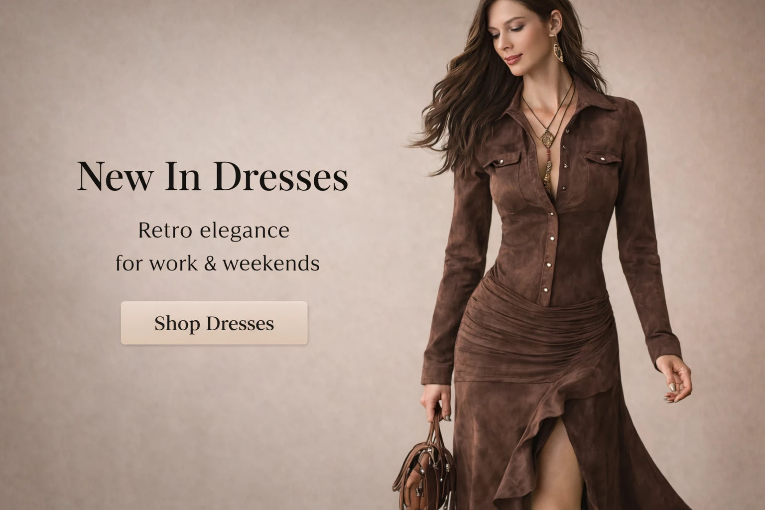 American Retro Suede Tassel Slit Maxi Dress (No Belt)